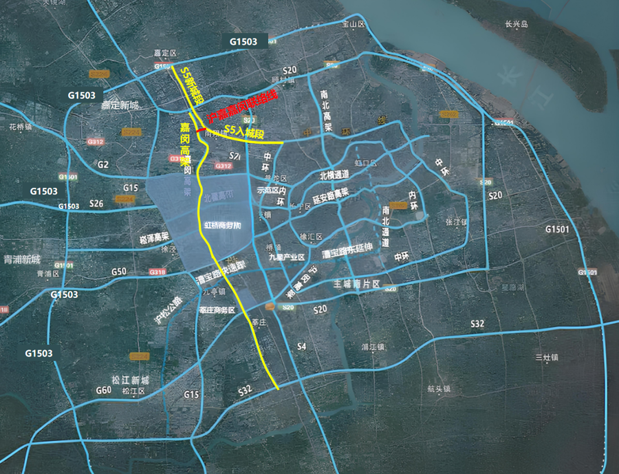 S5沪嘉高速与嘉闵高架互联互通之后,可以提前分流省际交通,减少长距离省际过境交通对嘉定主城区冲击,提升S5快速路服务于主城区和郊区新城的市域交通功能,支撑嘉定新城的发展。