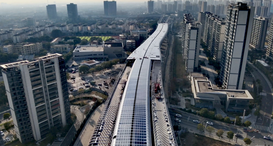 在建设过程中,为了降低对周边影响,沪嘉高速—嘉闵高架联络线工程在临近居民区及学校路段100%采用全封闭声屏障设计,最大化地阻隔高架噪音。全封闭声屏障采用大弧形横断面钢架结构,配合透光率达85%的聚碳酸酯隔声屏体,弧形设计与高透视觉体验融合,在降噪同时可以兼顾车辆驾驶人员视觉体验,确保交通安全。