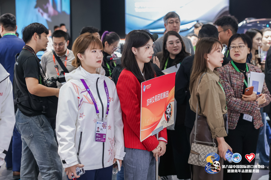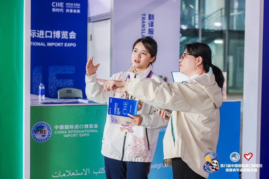 今年,有关部门采用“1+N”配岗模式,帮助港澳台青年志愿者与上海高校志愿者的岗位服务深度融合。在咨询组,港澳“小叶子”与来自华东理工大学等3所上海高校的80余名“小叶子”组队开展服务。“来自天南地北的上海高校‘小叶子’们,用最大的热情拥抱了我。他们耐心地教我复杂的场馆布局,在我用普通话表达偶尔卡顿时,会微笑着鼓励我说‘没关系,慢慢讲’。我们在一起协作解决各种难题的过程中,建立起深厚的情谊。”在汤可蓓看来,进博会志愿服务是一场“双向奔赴”,“我们在岗位上奉献青春热情,进博回馈我们以成长的舞台和开阔的视野,更让我们收获坚定的文化自信。”
