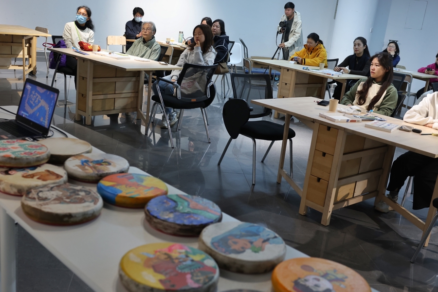 市民体验手鼓上绘画