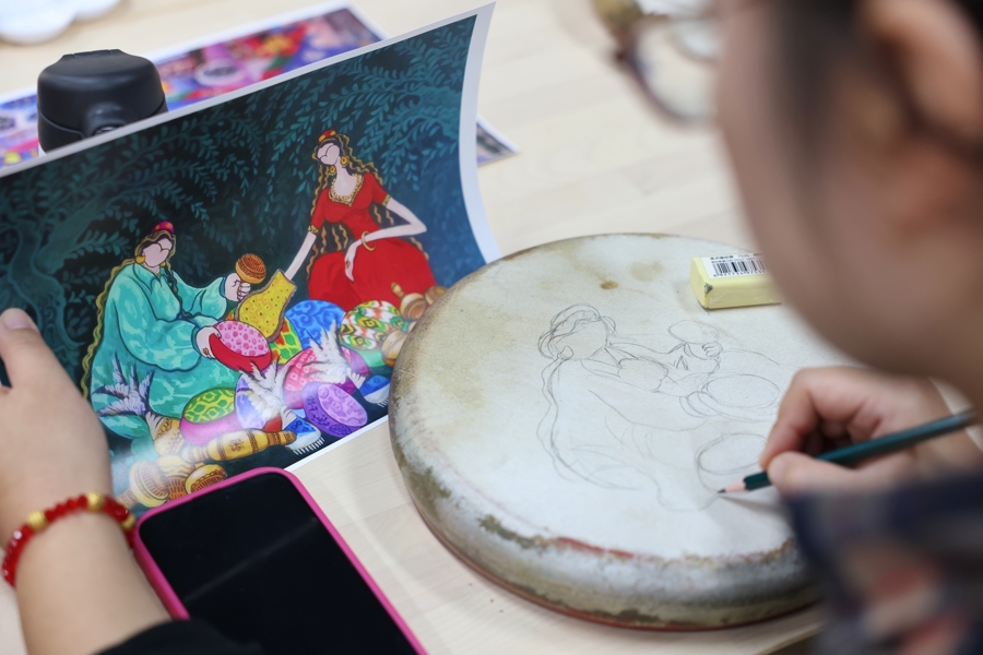 市民在手鼓上绘画