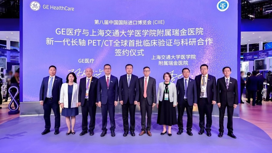 文汇报记者获悉,第八届进博会期间,上海交通大学医学院附属瑞金医院与GE医疗正式签约,共同开启新一代Omni 128长轴PET/CT的临床验证与科研合作。