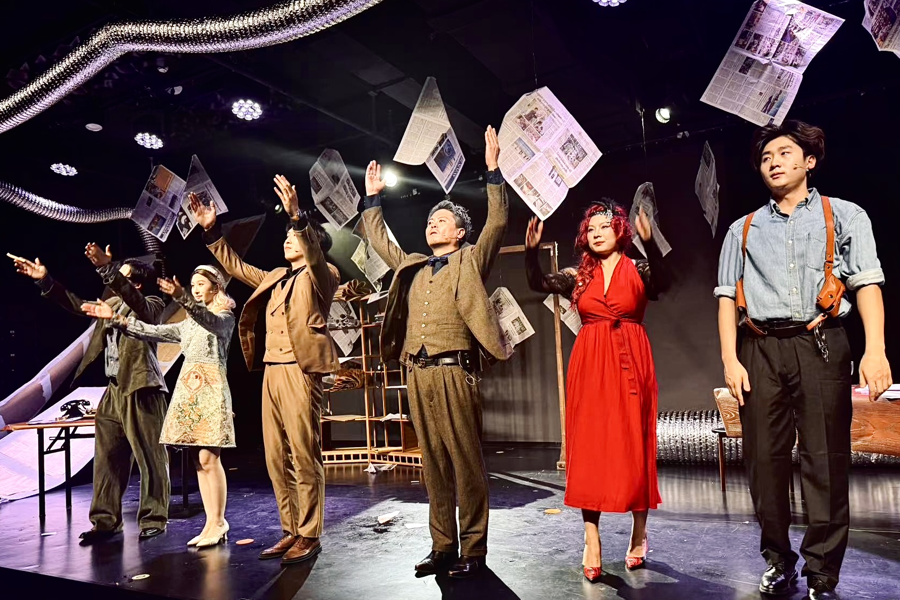 10月25日,“2025年大世界演艺嘉年华”期间,改编自百老汇经典喜剧的话剧《头条》在上海大世界上演,以美国报社编辑部为背景,为观众呈现了一场兼具笑声与思考的戏剧体验。