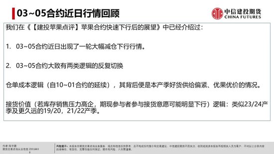 苹果期货合约近期出现减仓下行行情,而各合约大致可以分为代表冷库苹果的03~05合约以及代表仍在果树上,尚未到达花期的10及其后合约。
